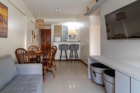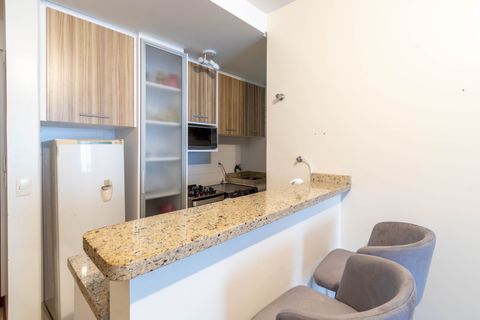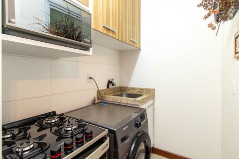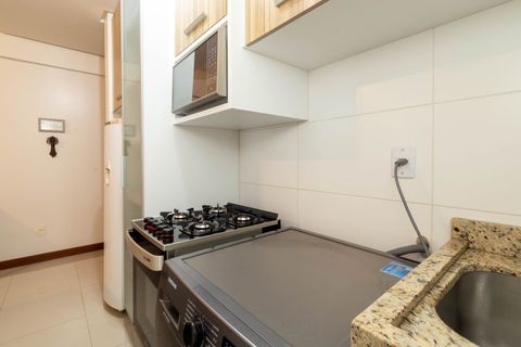 - Cozinha estilo americana equipada com utensílios e eletrodomésticos necessários para preparar e servir suas refeições no conforto do local;