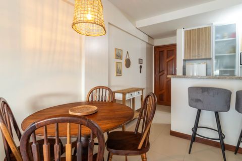 - Ambientes de convívio integrados em cômodo bem arejado pela brisa marítima, sala de estar junto ao espaço de refeições e cozinha;