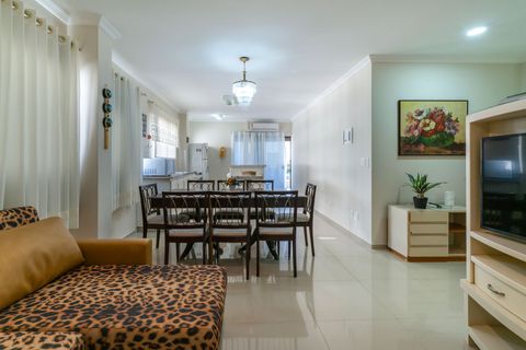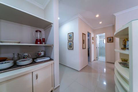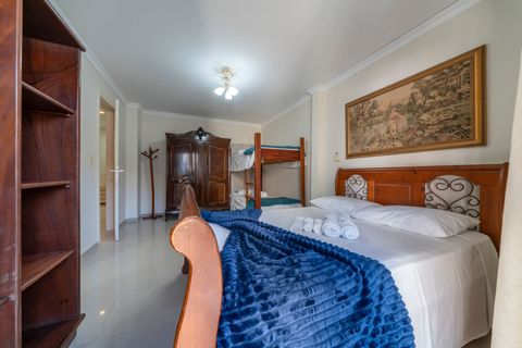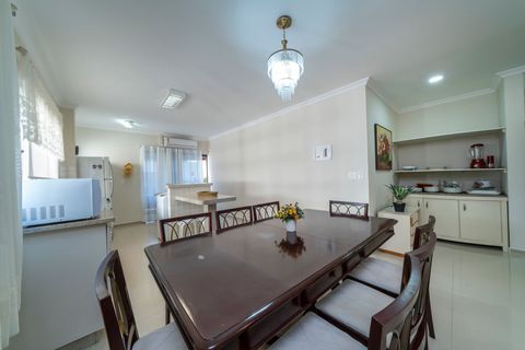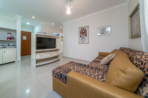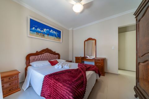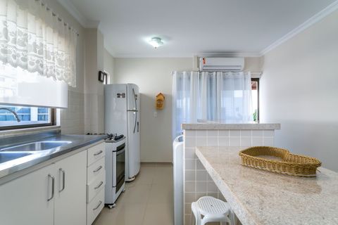 Com 2 quartos, 2 banheiros e 1 vaga de garagem coberta, o imóvel acomoda confortavelmente até 6 pessoas. A sala tem TV Samsung 50” e Wi-Fi. A cozinha é totalmente equipada, com forno, micro-ondas, torradeira, panelas, formas, louças e muito mais. Churrasqueira privativa com grelhas e espetos está disponível na sacada.